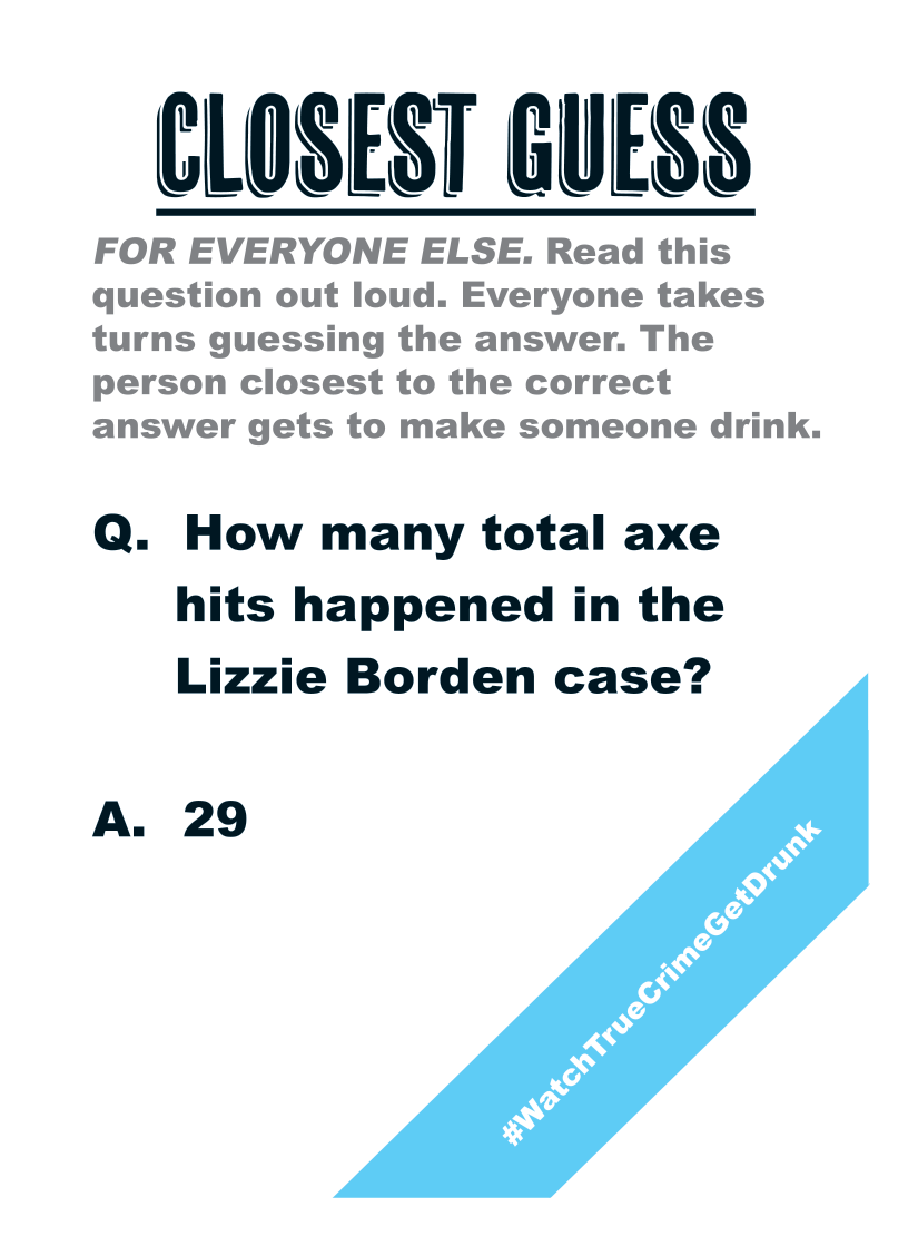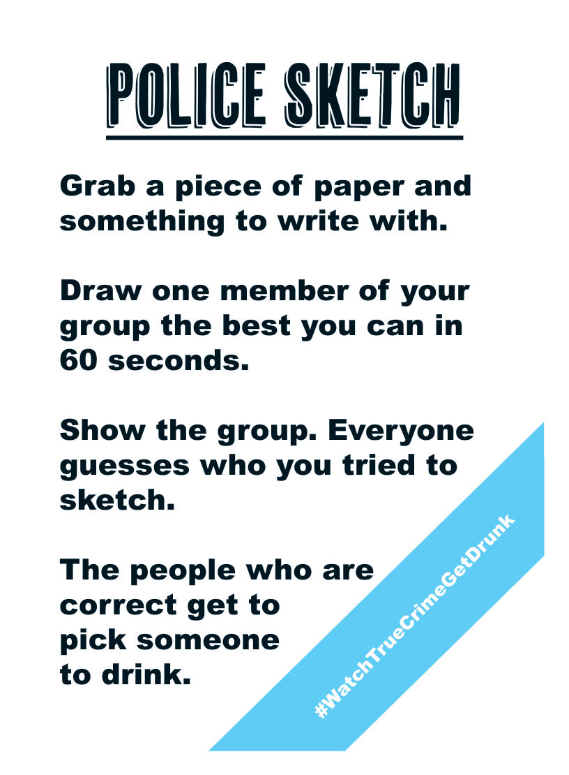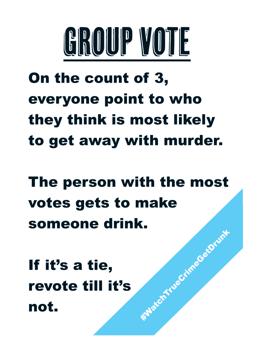 • This game can work with any show that has to do with true crime, though we find it works best with a show about a murder or something just as intense.
